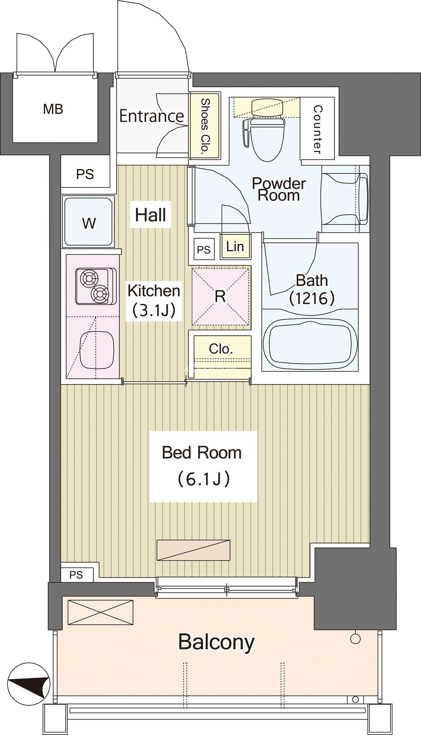 | 間取り | 1K | 専有面積 | 24.49㎡ |