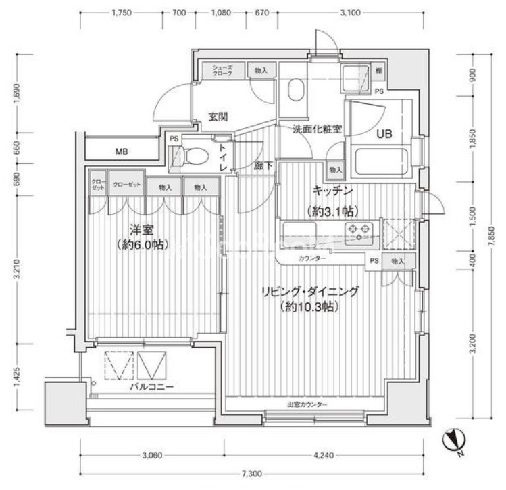 間取り | 1LDK | 専有面積 | 47.35㎡ |