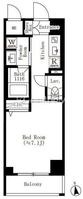 | 間取り | 1K | 専有面積 | 25.43㎡ |