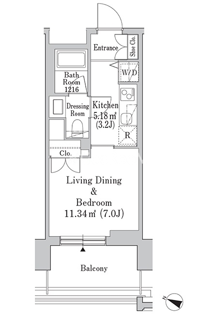 | 間取り | 1K | 専有面積 | 25.43㎡ |