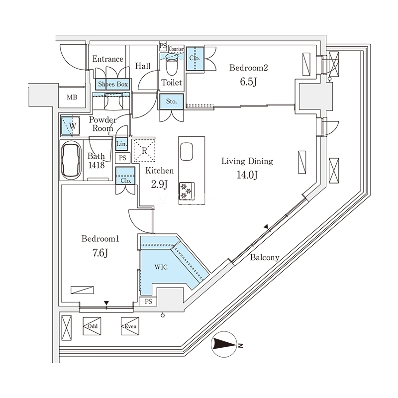 | 間取り | 2LDK | 専有面積 | 70.84㎡ |