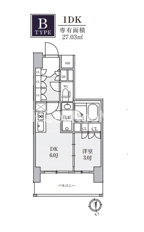 | 間取り | 1DK | 専有面積 | 27.03㎡ |
