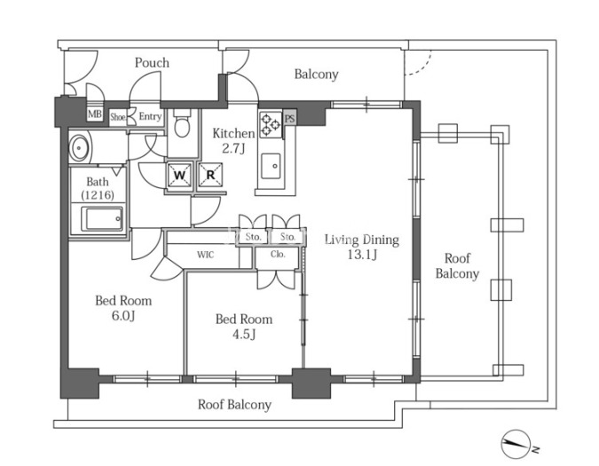 | 間取り | 2LDK | 専有面積 | 55.86㎡ |