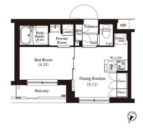 | 間取り | 1DK | 専有面積 | 25.85㎡ |