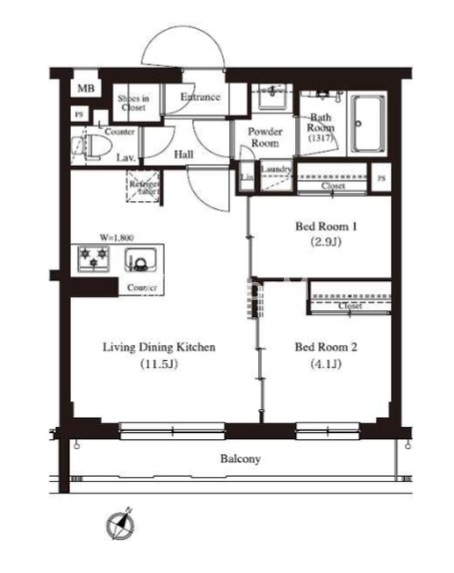 | 間取り | 2LDK | 専有面積 | 44.48㎡ |