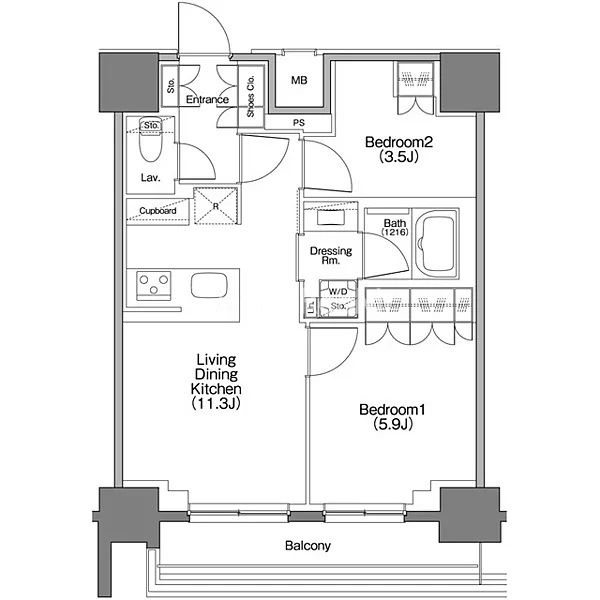 | 間取り | 2LDK | 専有面積 | 46.46㎡ |