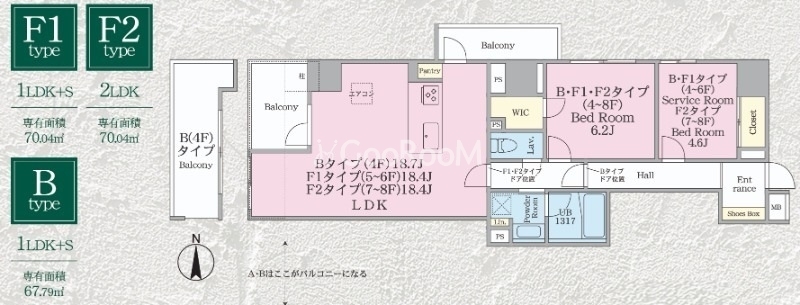 | 間取り | 1SLDK | 専有面積 | 70.04㎡ - 72.46㎡ |