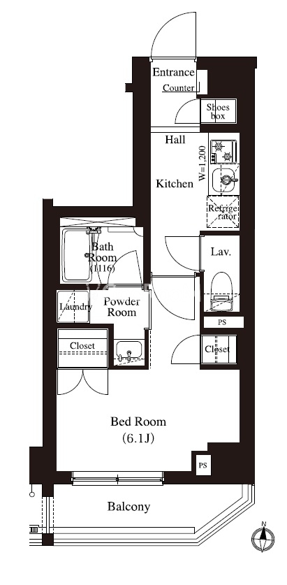 | 間取り | 1K | 専有面積 | 26.22㎡ |