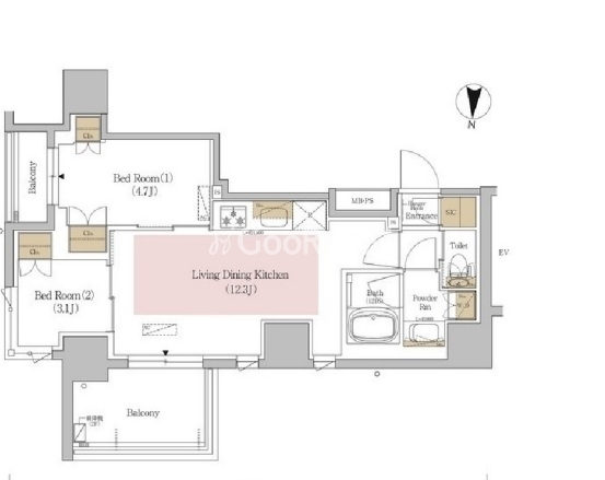 | 間取り | 2LDK | 専有面積 | 45.55㎡ |
