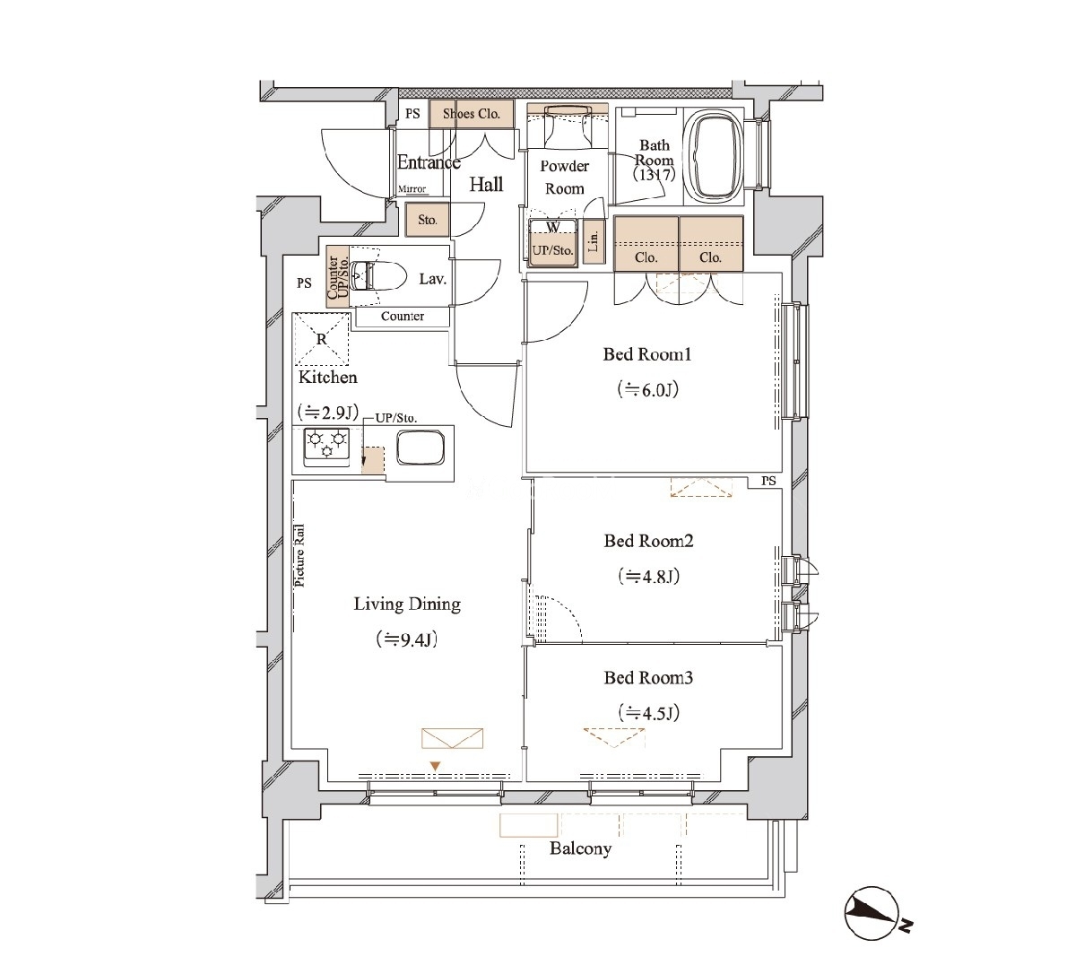 | 間取り | 3LDK | 専有面積 | 60.01㎡ |
