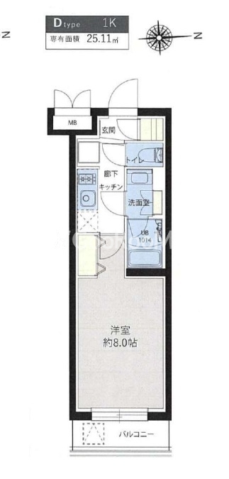 | 間取り | 1K | 専有面積 | 25.11㎡ |