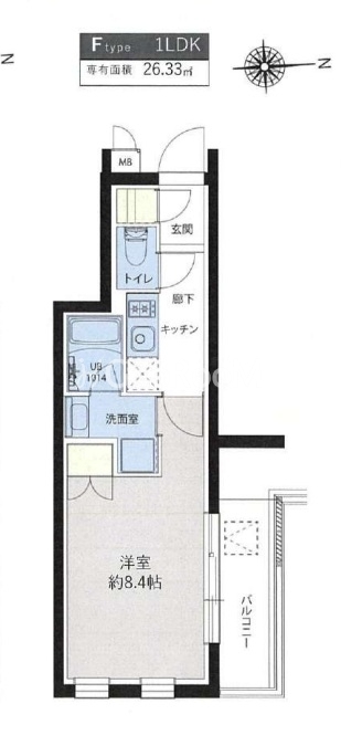 | 間取り | 1K | 専有面積 | 26.33㎡ |