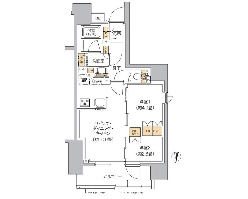 | 間取り | 2LDK | 専有面積 | 42.05㎡ |