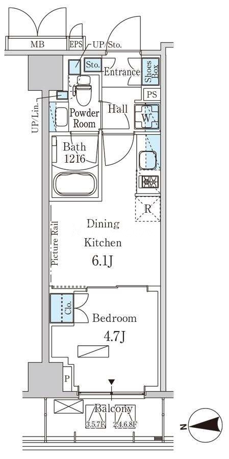 | 間取り | 1DK | 専有面積 | 26.99㎡ |