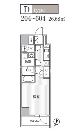 | 間取り | 1K | 専有面積 | 26.68㎡ |