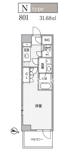 | 間取り | 2K | 専有面積 | 31.68㎡ |