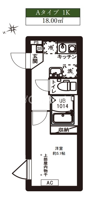 | 間取り | 1K | 専有面積 | 18㎡ |