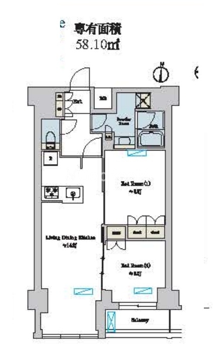 間取り | 2LDK | 専有面積 | 58.1㎡ |
