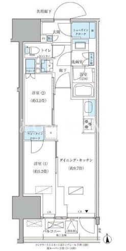 | 間取り | 2DK | 専有面積 | 45.57㎡ |