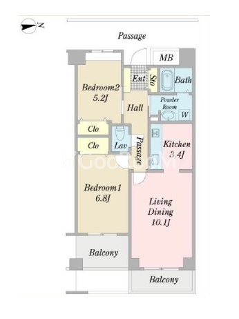 | 間取り | 2LDK | 専有面積 | 61.39㎡ |