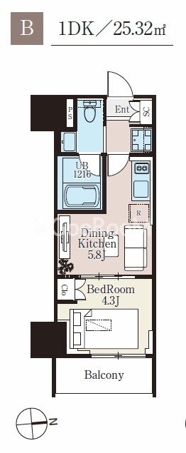 | 間取り | 1DK | 専有面積 | 25.32㎡ |