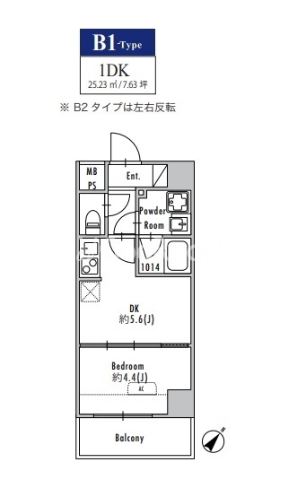 | 間取り | 1DK | 専有面積 | 25.22㎡ - 25.23㎡ |
