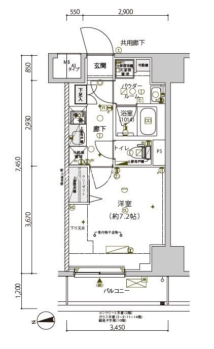 | 間取り | 1K | 専有面積 | 25.7㎡ |
