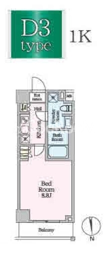 | 間取り | 1K | 専有面積 | 27.88㎡ |