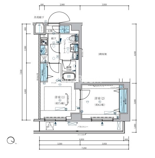 | 間取り | 2K | 専有面積 | 37.72㎡ |