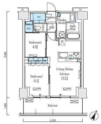 | 間取り | 2LDK | 専有面積 | 55.8㎡ |