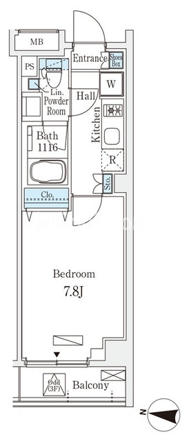 | 間取り | 1K | 専有面積 | 25.57㎡ |