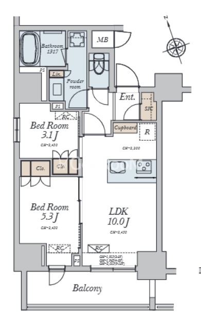 | 間取り | 2LDK | 専有面積 | 45.19㎡ |