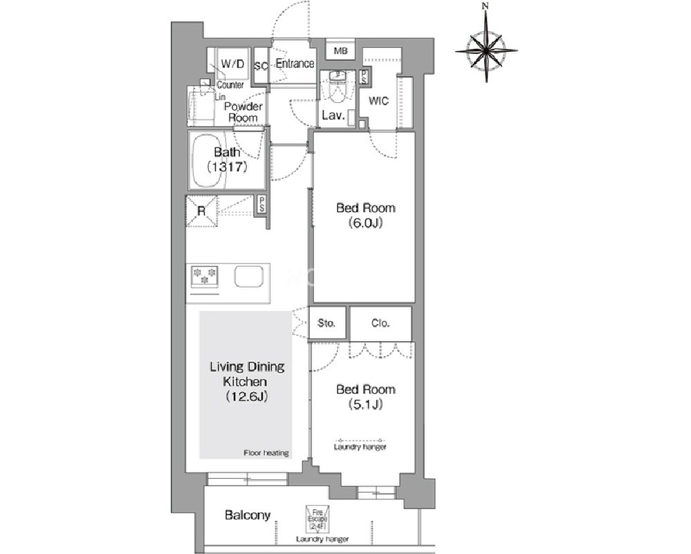 | 間取り | 2LDK | 専有面積 | 54.63㎡ |