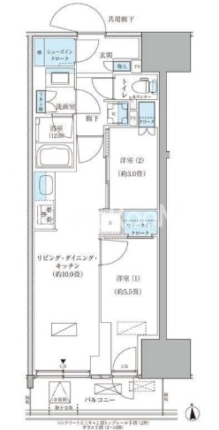 | 間取り | 2LDK | 専有面積 | 45.57㎡ |