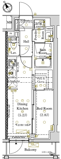 | 間取り | 1DK | 専有面積 | 25.58㎡ |