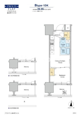 間取り | 1DK | 専有面積 | 26.08㎡ |