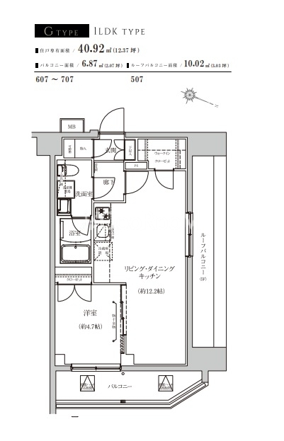 間取り | 1LDK | 専有面積 | 40.92㎡ |