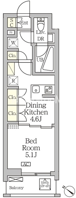 間取り | 1DK | 専有面積 | 25.78㎡ |