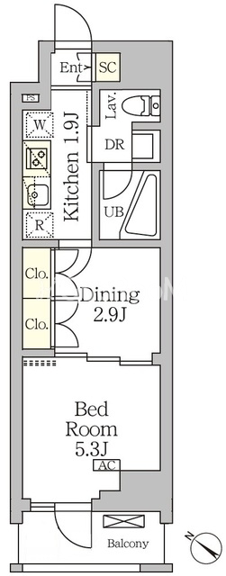 間取り:1R - 1K
