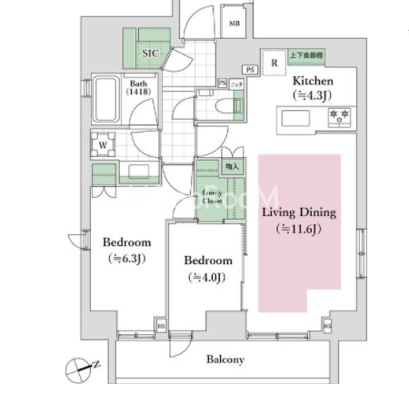 | 間取り | 2LDK | 専有面積 | 60.4㎡ |