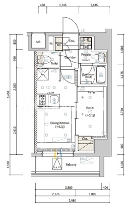| 間取り | 1DK | 専有面積 | 25.55㎡ |