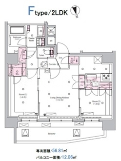 | 間取り | 2LDK | 専有面積 | 56.81㎡ |