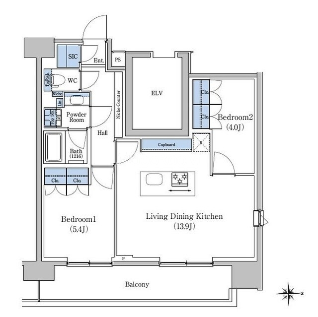 間取り | 2LDK | 専有面積 | 54.99㎡ |