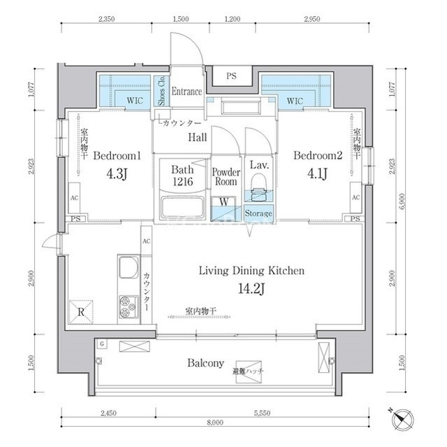 | 間取り | 2LDK | 専有面積 | 54.54㎡ |
