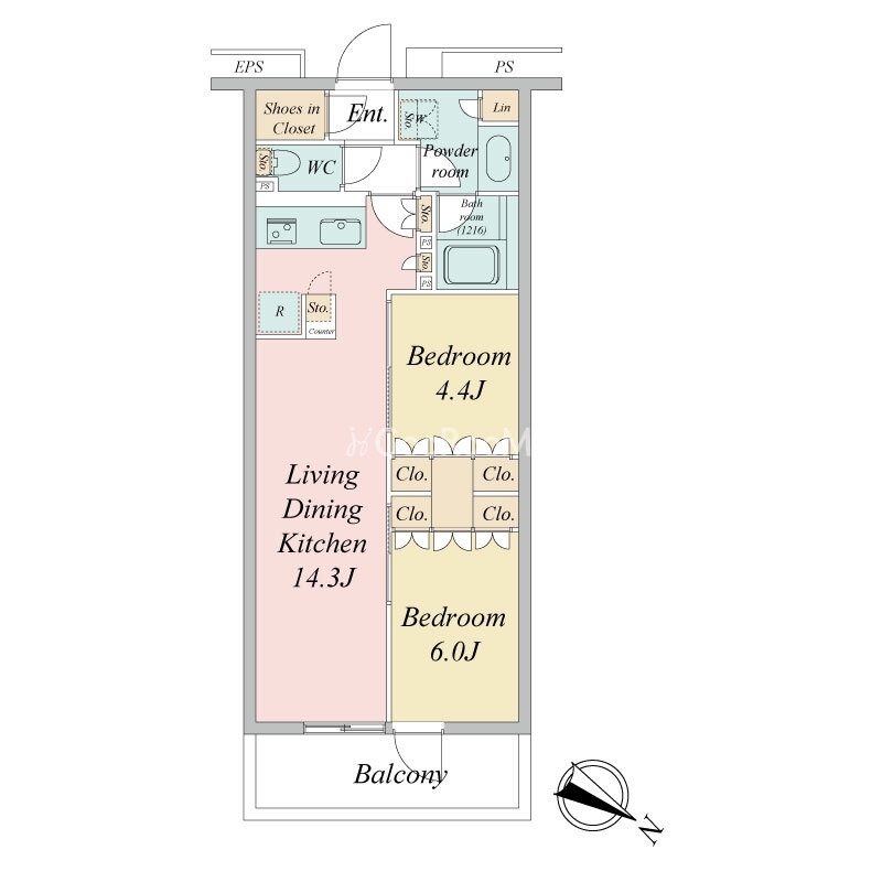 間取り | 2LDK | 専有面積 | 52.72㎡ |
