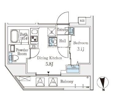 | 間取り | 1DK | 専有面積 | 25.06㎡ |