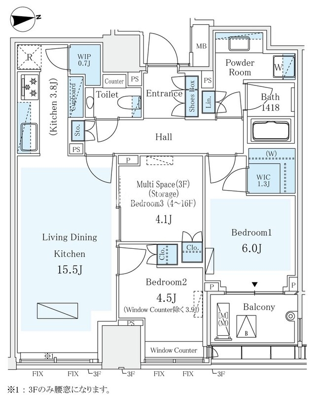 | 階数 | 3階 / 地上18階 (地下2階) | 方位 | 東 |