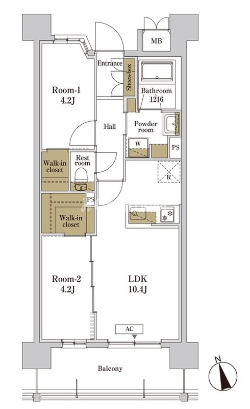 | 間取り | 2LDK | 専有面積 | 46.61㎡ |