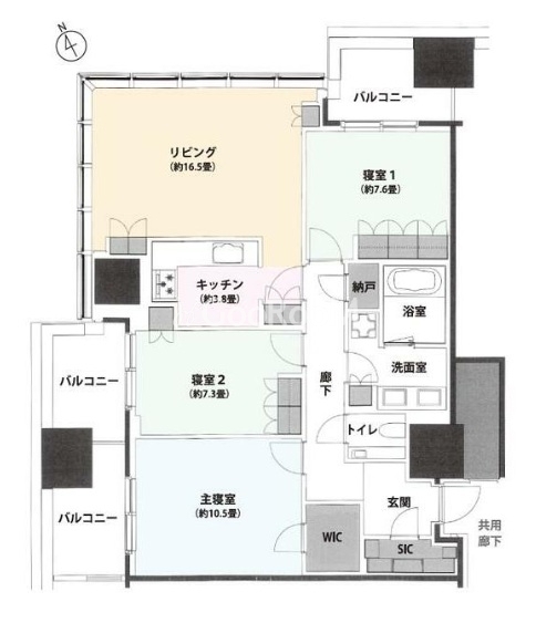 北西向き、 広さ114.07㎡のお部屋です。