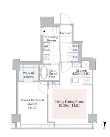間取り | 1LDK | 専有面積 | 56.43㎡ |